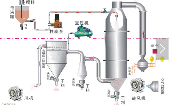針對一些大型干燥設備就需要采用兩臺風機,一臺作為鼓風機,另一臺作為引風機。這種系統具有較大的靈活性,可以通過調節管路壓力分布,同時改善烘干機的操作條件,使之處于接近大氣壓的微負壓下操作。