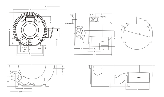 德冠品牌高壓風機產品尺寸表: